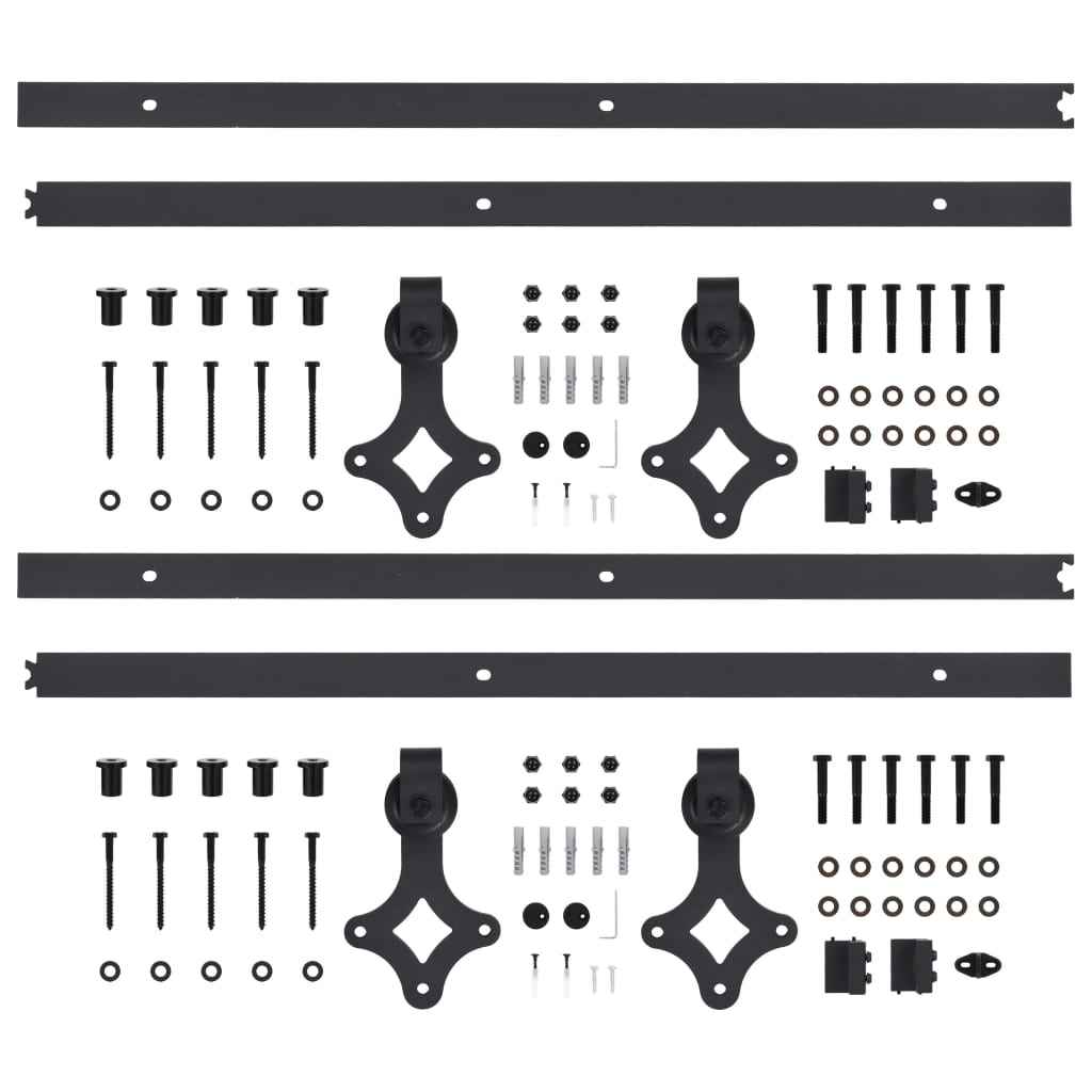 Acest set pentru uși glisante include 2 șine culisante de înaltă calitate (cu o lungime totală de 183 cm) și 2 role rezistente la uzură. Șinele culisante sunt realizate din oțel vopsit electrostatic, care este robust, durabil și destinat unor sarcini grele. Datorită rulmenților interiori, ușile dvs. vor aluneca ușor și silențios. Sunt incluse și opritori de ușă pentru a preveni deraierea rolelor, în timp ce garniturile de cauciuc vor amortiza izbirea rolelor și vor reduce zgomotul. Mai mult decât atât, setul de piese pentru uși glisante este echipat cu un ghidaj de podea de înaltă calitate pentru a stabiliza mișcarea ușii.