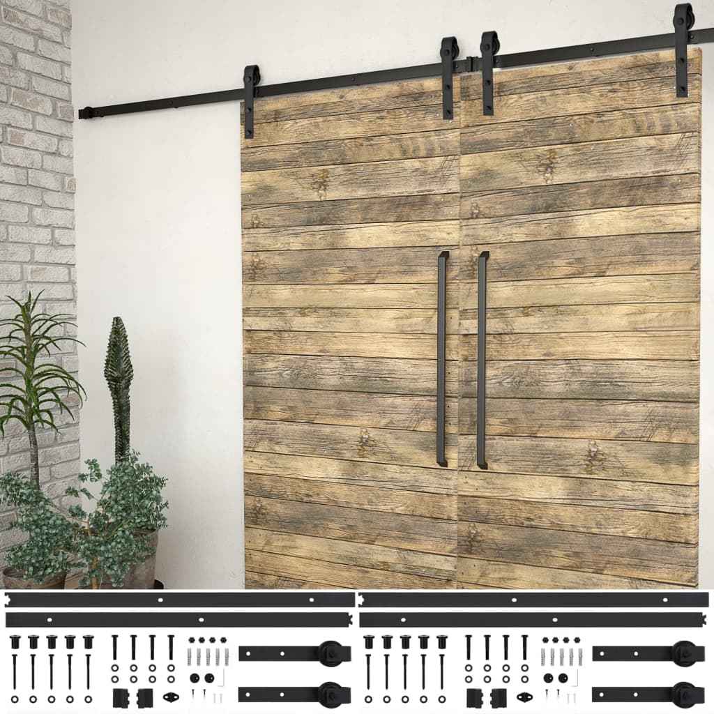 Seturi feronerie uși glisante, 2 buc., negru, 183 cm, oțel