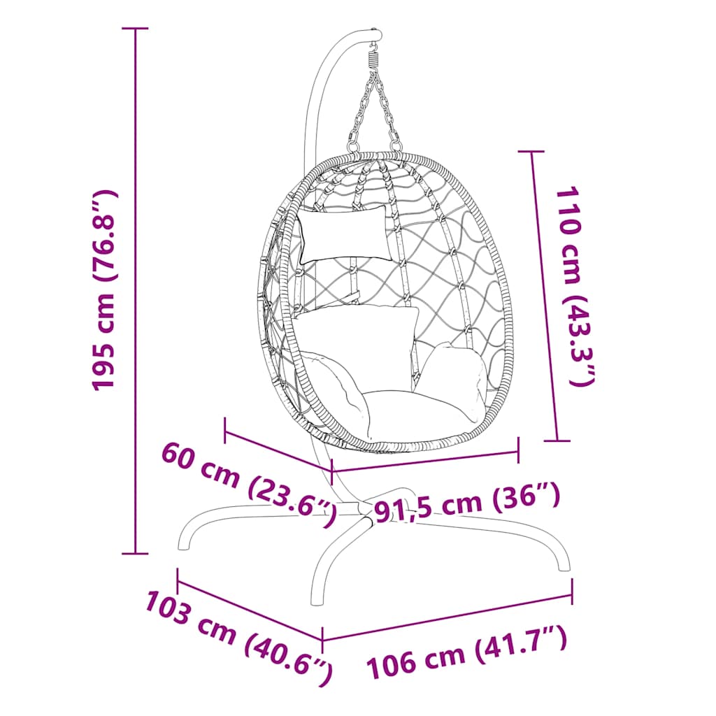 - Șezu confortabil: Perna și perna detașabile, groase și căptușite, ale scaunului tip ou leagăn oferă confortul suprem la ședere.