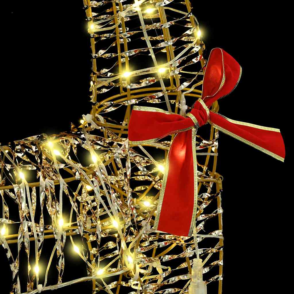 Sania trasă de reni este o piesă adorabilă ce aduce bucuria Crăciunului în orice decor de sărbători. Cu un stil simplu și elegant, această decorațiune sezonieră îmbină modernul cu spiritul festiv. Cu lumini LED albe calde, poate transforma spațiile interioare și exterioare protejate într-un tărâm de iarnă, fiind perfectă pentru întâlniri de Crăciun. Figurinele frumos sculptate de reni care trag sania adaugă magie în casa dumneavoastră în sezonul sărbătorilor.