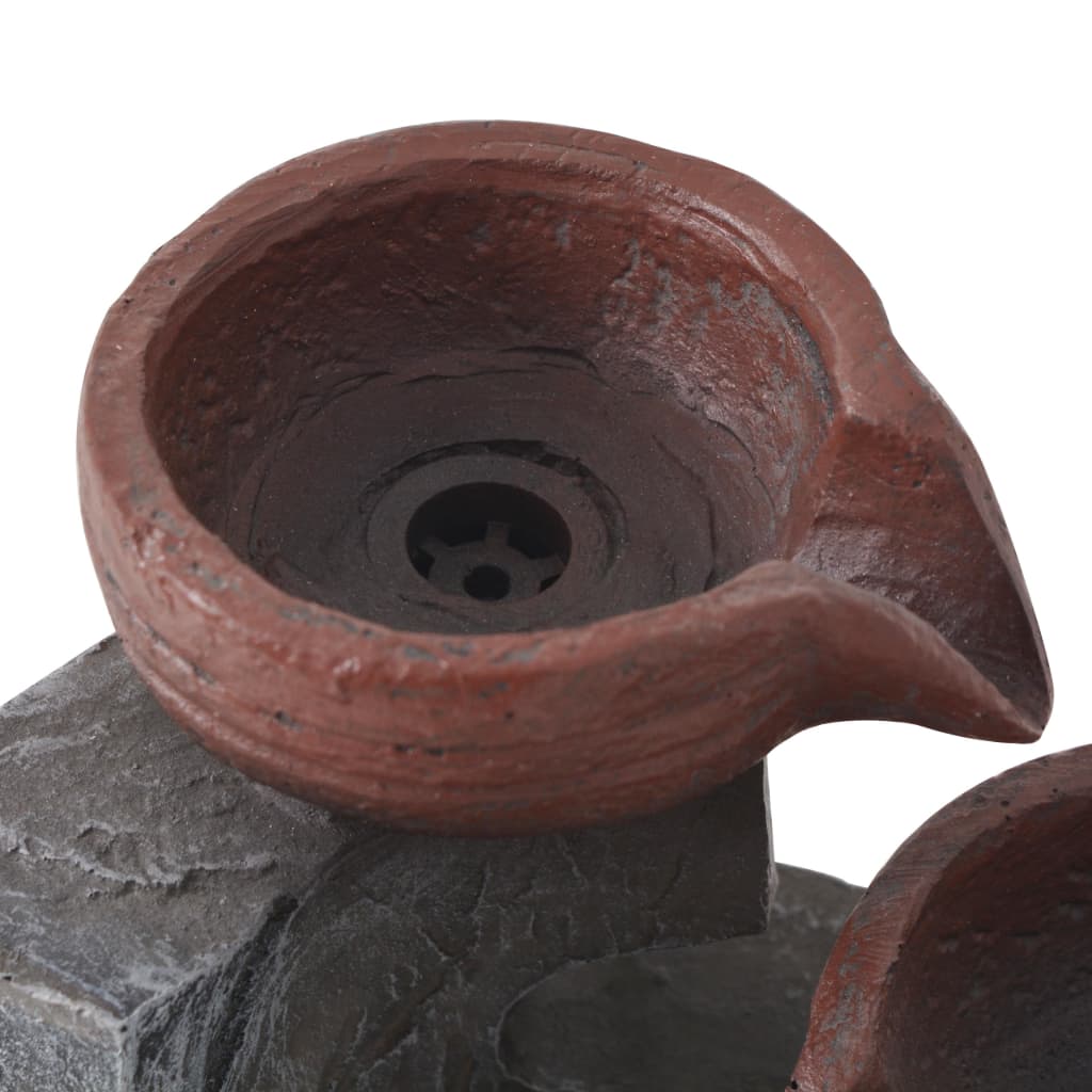 Fântâna este realizată din polirășină. Fluxul de apă în cascadă este iluminat cu LED-uri, ceea ce oferă un efect vizual uimitor, mai ales noaptea. Fluxurile multiple de apă curg și sunetul liniștitor al apei care se prelinge creează o atmosferă relaxantă și meditativă. Pompa inclusă, de înaltă calitate, asigură o funcționare sigură și fiabilă.
