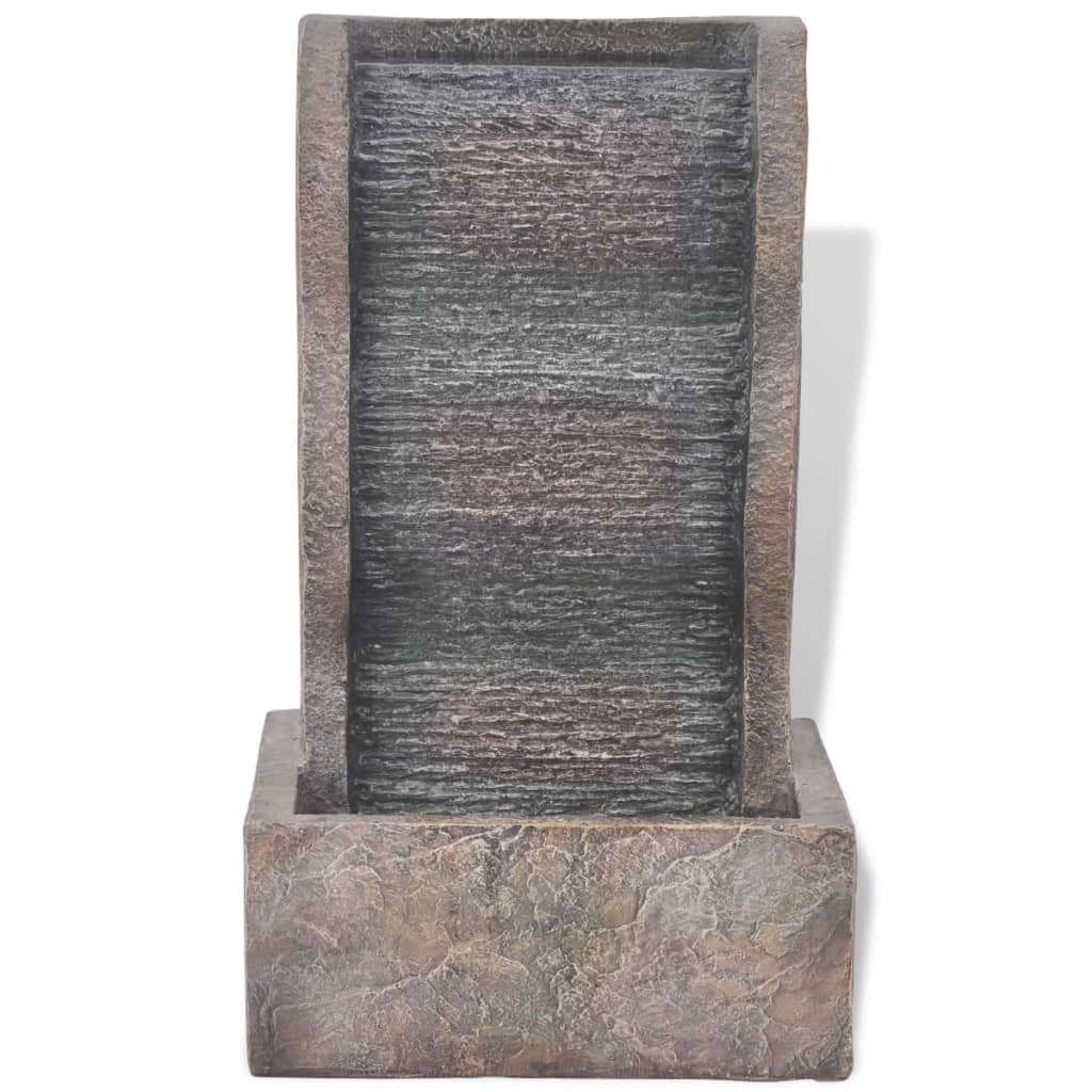 Această fântână tip cascadă va complimenta, cu siguranță, orice decor. Este iluminată LED, ceea ce realizează un efect vizual uimitor, mai ales pe timp de noapte. Construită din polirășină, este rezistentă la raze UV, ceea ce înseamnă că va arăta bine și își va păstra culoarea atunci când este plasată în lumina directă a soarelui. Fluxurile multiple de apă și sunetul apei curgătoare vor crea o atmosferă relaxantă și meditativă. Pompa inclusă de înaltă calitate asigură o funcționare sigură și stabilă.