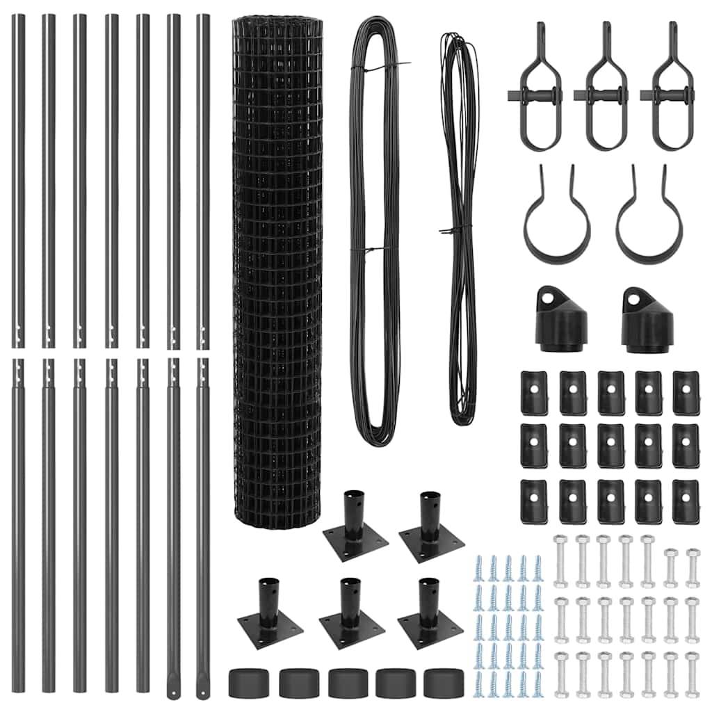 Gard cu Stâlp Gri 1,4 x 10 m Oțel și PVC