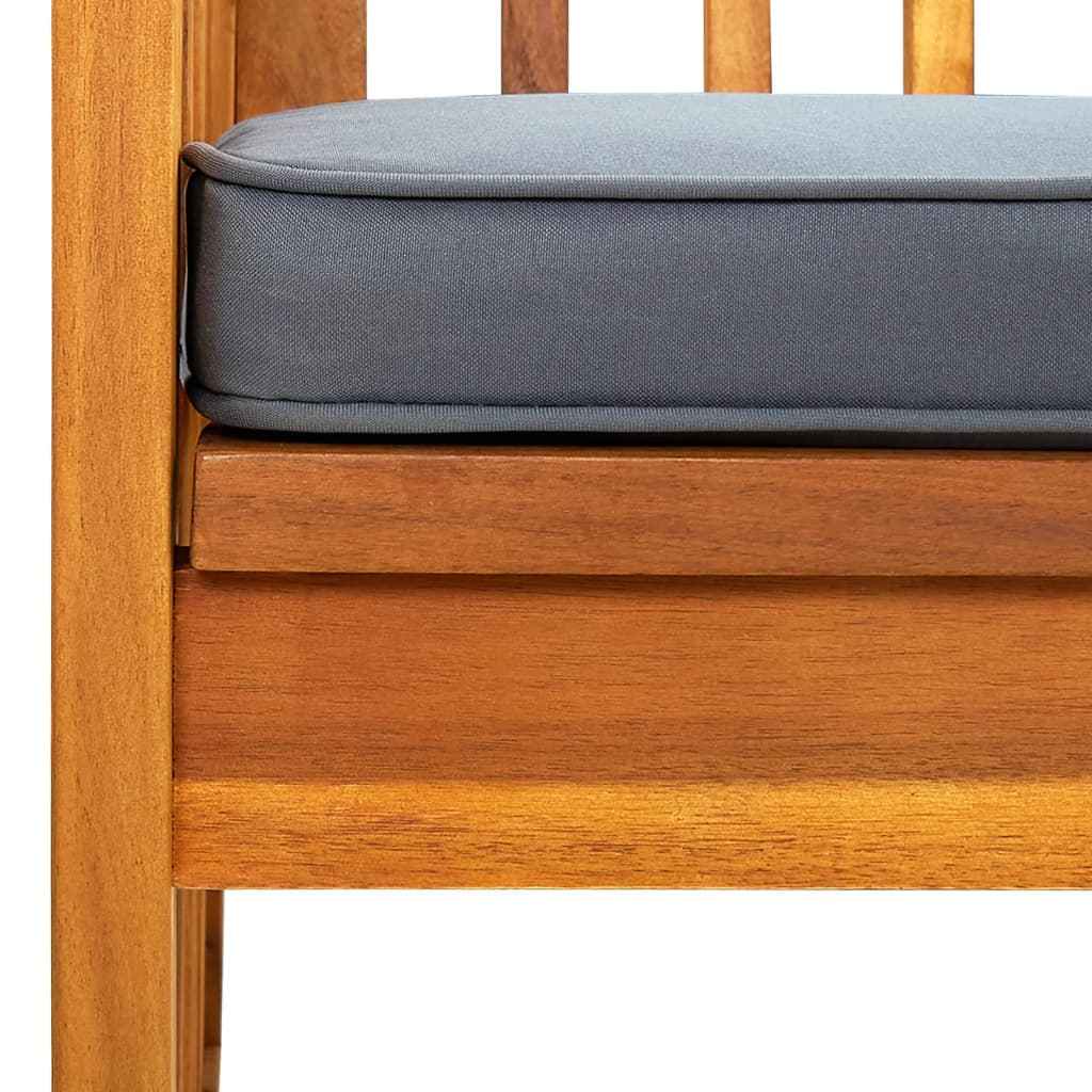 Banca cu cotiere este realizată din lemn masiv de acacia, un lemn tropical de esență tare, rezistent la intemperii și foarte durabil. Datorită finisajului cu ulei, canapeaua de terasă are o culoare caldă și este ușor de curățat și de întreținut. În plus, perna inclusă căptușită gros oferă confort maxim.