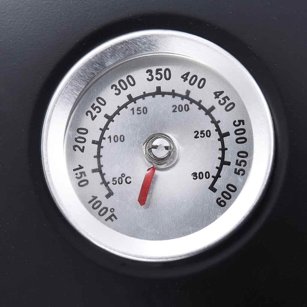 Termostatul de pe capac vă arată temperatura, care poate fi reglată cu ușurință prin ușile laterale și capac. Grilajul pentru cărbuni ridică cărbunele pentru a permite circularea mai eficientă a aerului. Picioarele în structură triunghiulară adaugă stabilitate. După utilizare, grătarul BBQ poate fi demontat în piesele componente, pentru a fi ușor de transportat și depozitat. Vă rugăm să rețineți: Asigurați-vă că utilizați grătarul pentru cărbuni pe o suprafață stabilă și plată.