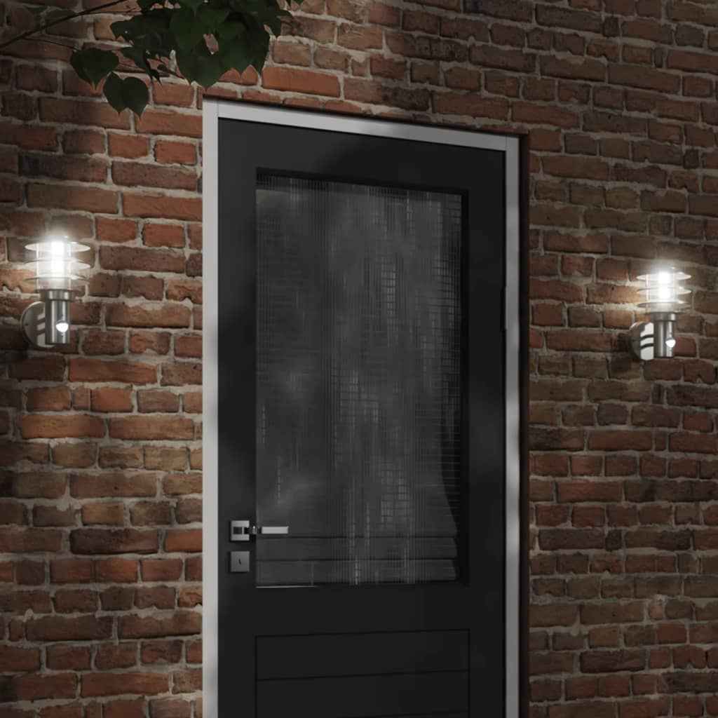 Lămpi exterioare de perete cu senzor 2 buc. argintiu, oțel inox