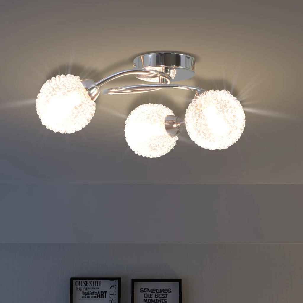 Această lustră poate fi montată cu ușurință pe orice plafon, datorită bazei metalice de calitate superioară. Brațele metalice spiralate îi dau un aspect elegant. O lumină plăcută se va filtra prin abajururile de sticlă delicate, luminând fiecare colț al camerei. Plasa lucioasă de sârmă, care decorează abajururile, reflectă lumina, amplificându-i strălucirea. Această lampă de tavan deosebită va arăta grozav în orice încăpere a casei.