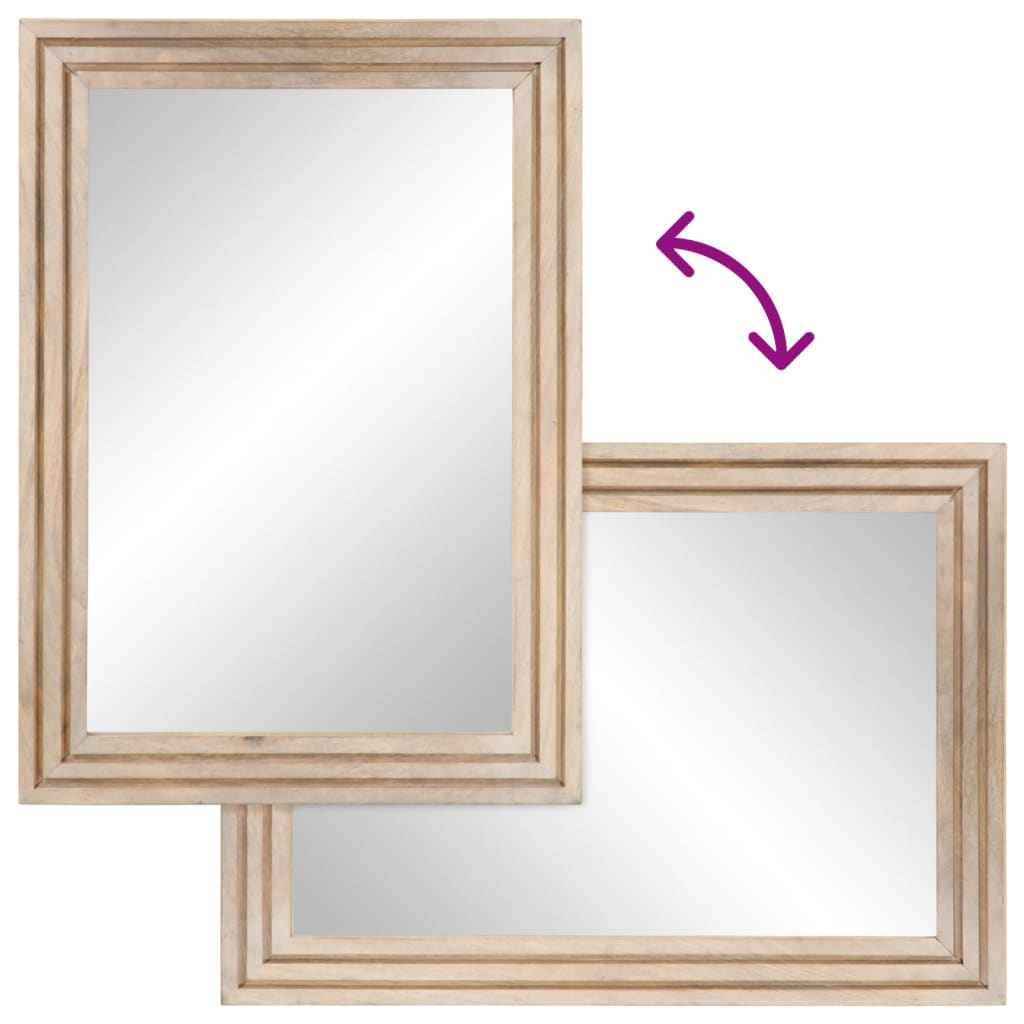 - Lemn masiv de mango: Lemnul masiv de mango este un lemn tropical rezistent, din care se realizează mobilier robust. Fibrele frumoase ale lemnului fac fiecare piesă de mobilier ușor diferită de celelalte. Realizată din lemn masiv de mango, oglinda este ușor de curățat.