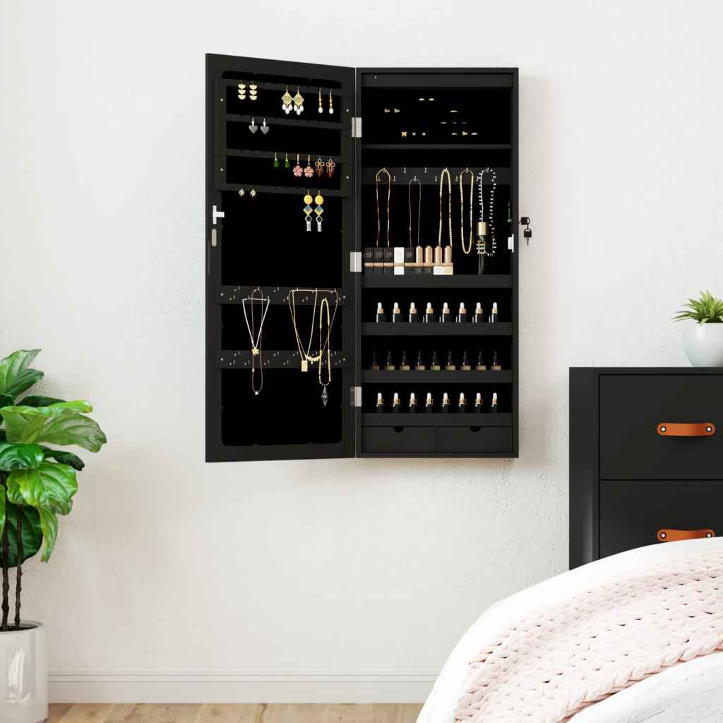 Păstrați-vă bijuteriile și parfumurile în mod discret și elegant, cu acest dulap de bijuterii cu oglindă stilat, cu lumini LED!