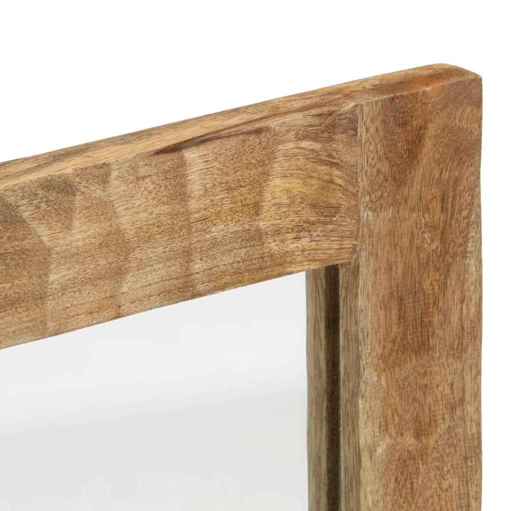 - Lemn masiv de mango: Lemnul masiv de mango este un lemn tropical rezistent, din care se realizează mobilier robust. Fibrele frumoase ale lemnului fac fiecare piesă de mobilier ușor diferită de celelalte. Realizată din lemn masiv de mango, oglinda este ușor de curățat.