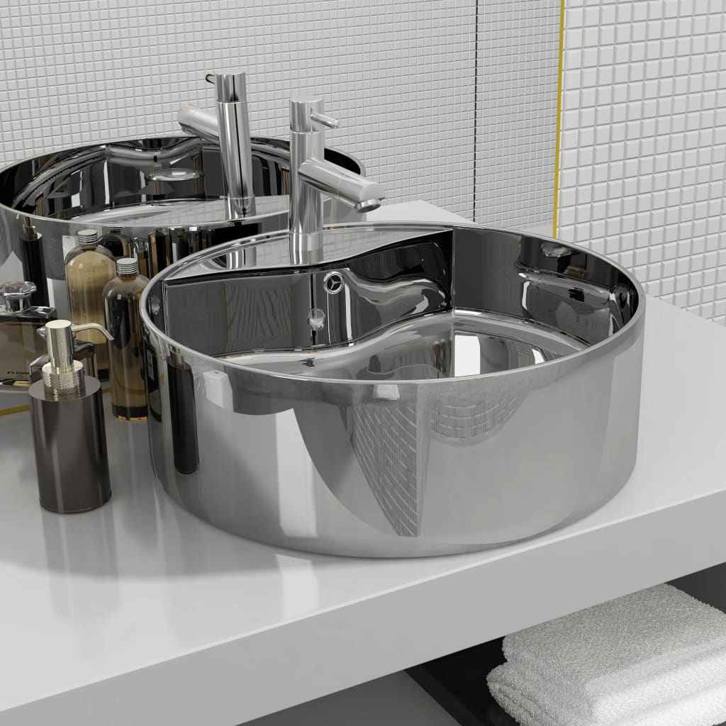 Chiuvetă cu preaplin, argintiu, 46,5x15,5 cm, ceramică
