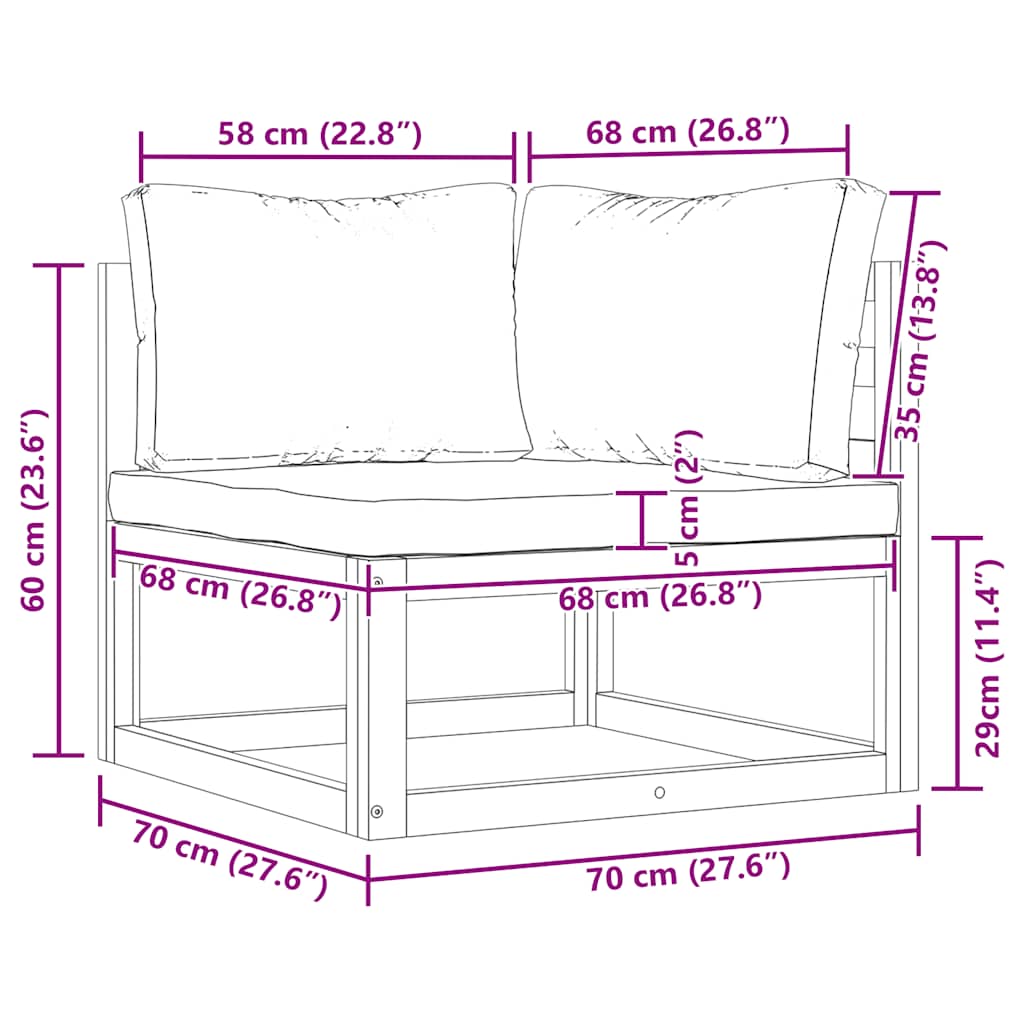Canapea de colț modulară, pernă gri închis, lemn masiv acacia