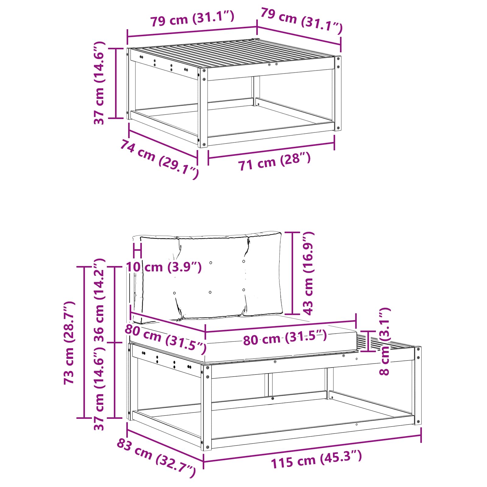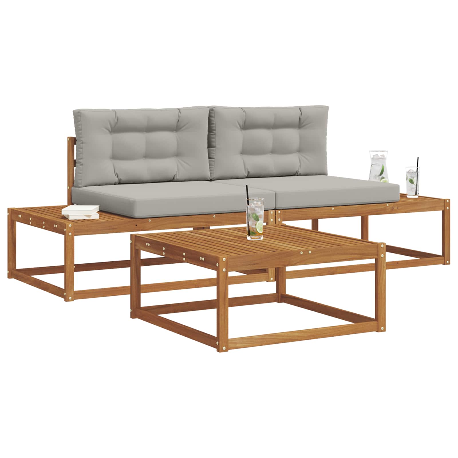 Set de canapele de exterior 3 Bucată Gri natural și deschis