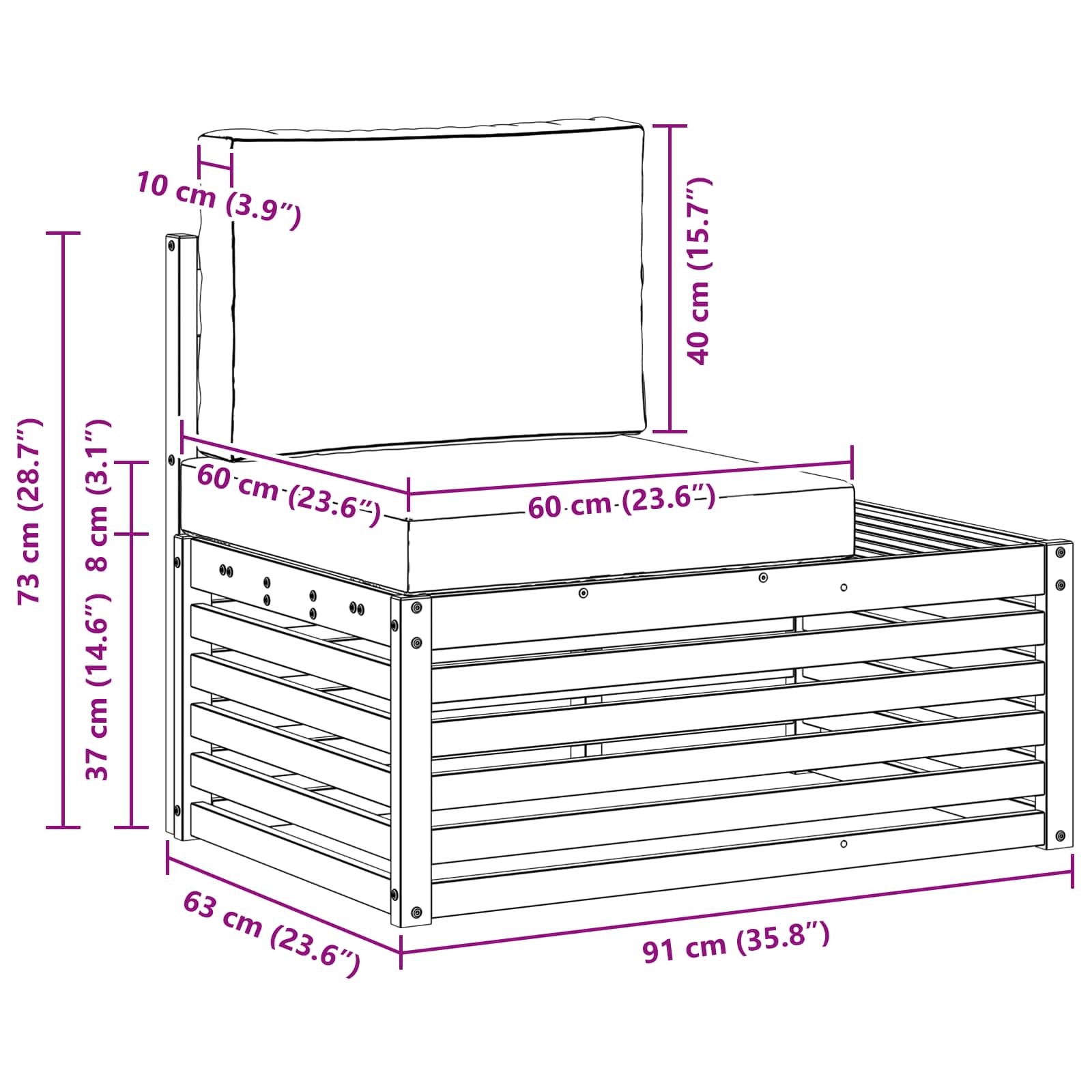 - 2 x Perne pentru șezut: 60 x 60 x 8 cm (LxWxH)