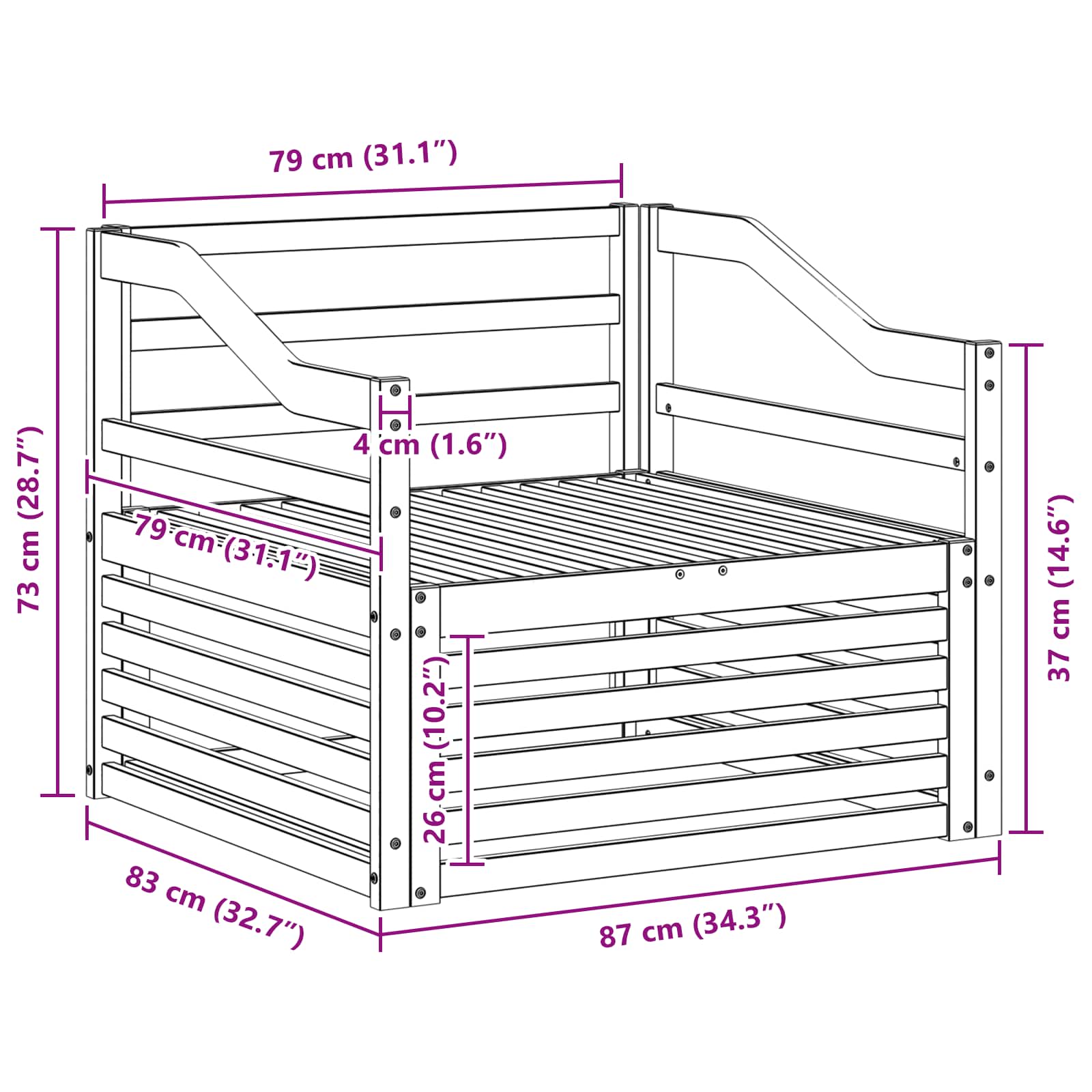 - 1 x Canapea mijlocie: 79 x 83 x 73 cm (LxWxH)