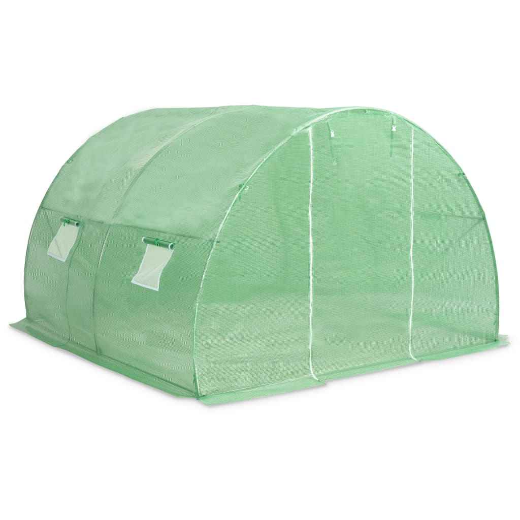 Această seră de plante va fi o soluție minunată pentru a vă proteja plantele de vânt, ploaie, razele soarelui și păsări dăunătoare. Sera este fabricată din țesătură de plasă din polietilenă de 140 g/m², care este cu 25% mai grea decât țesătura de plasă standard a multor competitori. Prin urmare, previne și mai bine influențele externe. Această seră de plante are un cadru din oțel galvanizat, robust și rezistent la rugină, pentru stabilitate suplimentară. Această seră este prevăzută cu patru ferestre cu dimensiuni de 38 x 38 cm pentru ventilație și, de asemenea, cu o ușă cu dimensiuni de 100 x 185 cm.