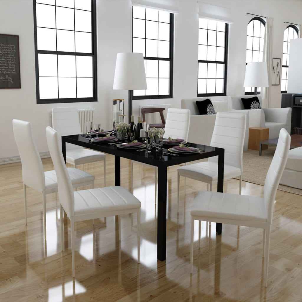 Set masă și scaune de bucătărie 7 piese alb și negru