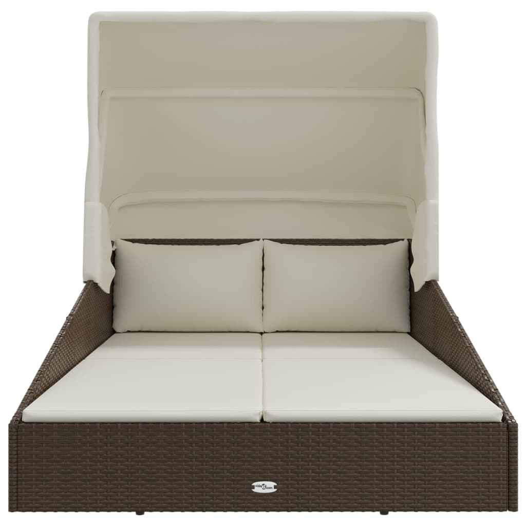 Șezlong cu acoperiș pliabil, maro, 200x114x128 cm, poliratan