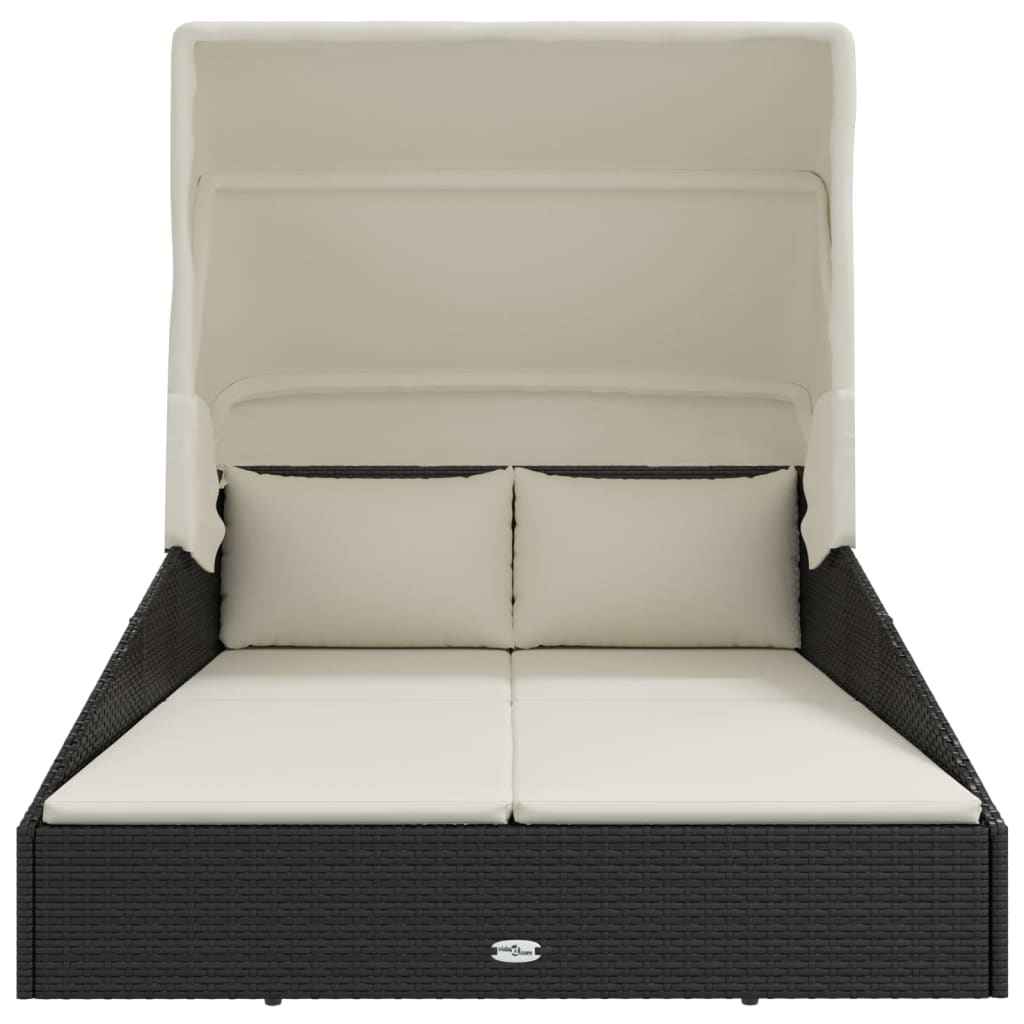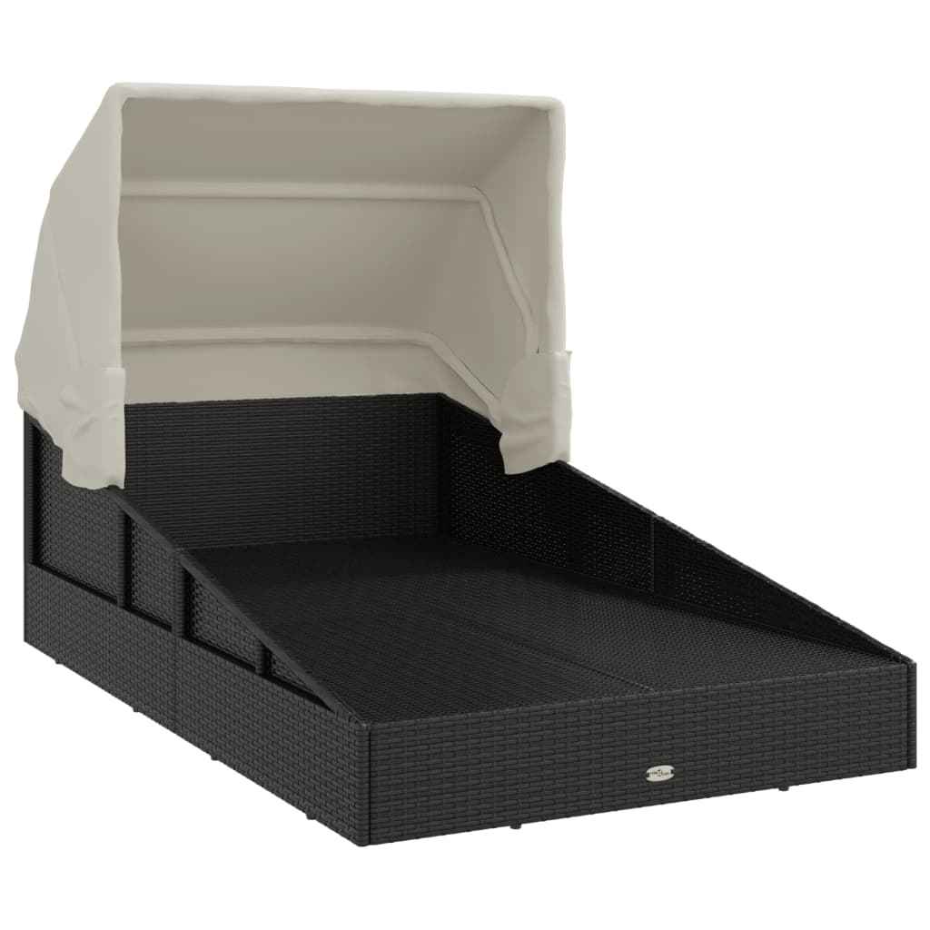Șezlong cu acoperiș pliabil, negru, 200x114x128 cm, poliratan