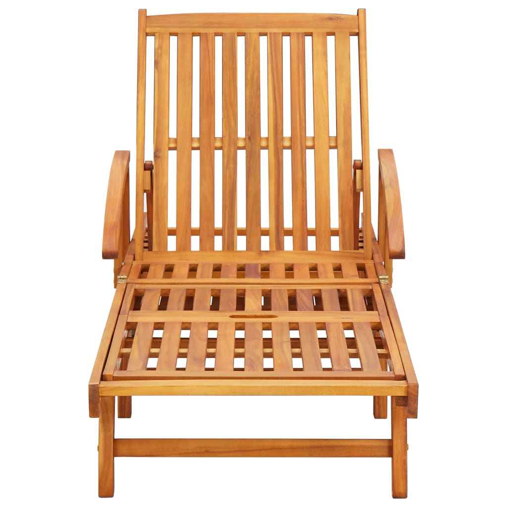 Construit din lemn masiv de acacia, șezlongul este rezistent la intemperii, durabil și potrivit pentru utilizare în spațiul exterior. Fiind echipat cu roți, poate fi deplasat cu ușurință. Spătarul și suportul pentru picioare sunt reglabile, de la șederea în poziție verticală până la întinderea completă, ceea ce vă oferă un mare confort. Patul de zi poate fi pliat când nu este utilizat. Perna inclusă este mai mult decât un plus practic, având și o funcție decorativă.