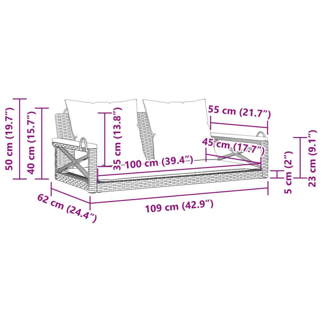 Bancă de balansoar cu perne, gri, 109x62x40 cm, poliratan