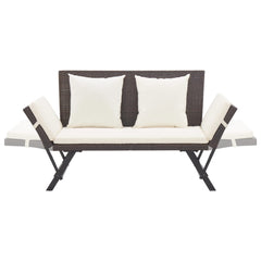 Fiind fabricată din ratan PE rezistent, această bancă de grădină este ușor de curățat, rezistentă la uzură și ideală pentru uz zilnic. Banca este prevăzută cu un cadru din oțel vopsit electrostatic robust, fiind deosebit de stabilă și durabilă. Poate fi convertită dintr-o bancă într-un pat de zi și invers rapid și cu ușurință, datorită laturilor ajustabile. Perna capitonată în strat gros va oferi confort optim și un plus de suport. Datorită designului cu fermoar, husa de pernă este detașabilă, pentru a fi ușor de spălat.