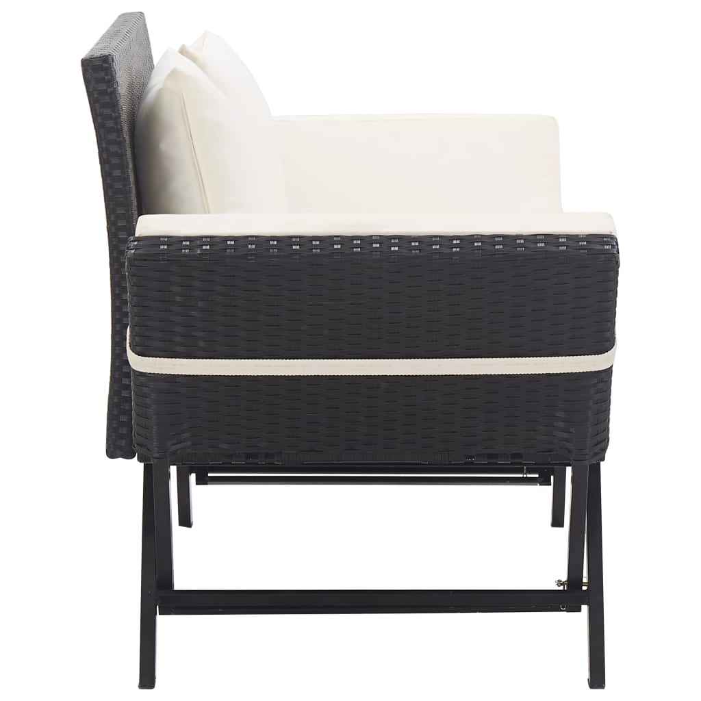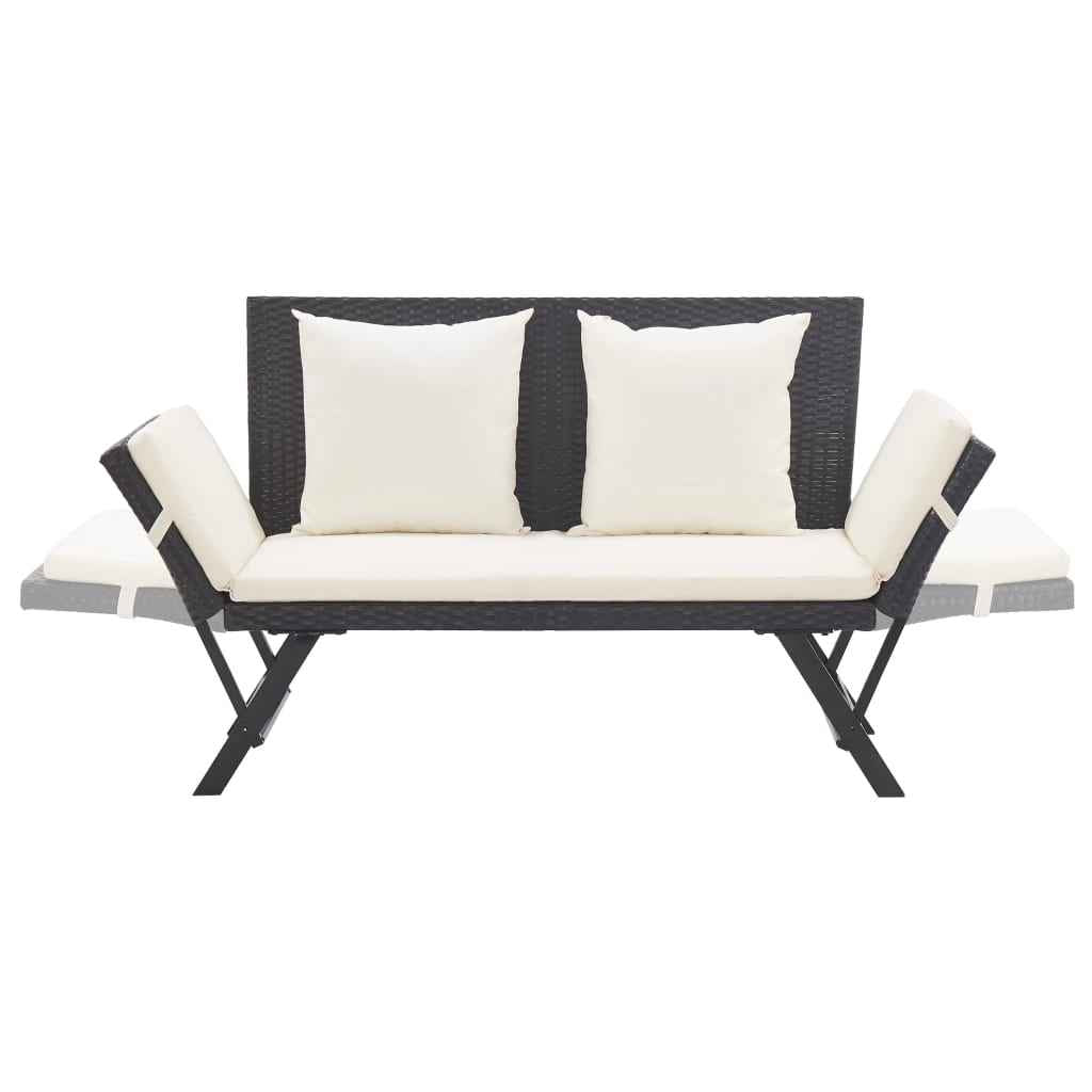 Fiind fabricată din ratan PE rezistent, această bancă de grădină este ușor de curățat, rezistentă la uzură și ideală pentru uz zilnic. Banca este prevăzută cu un cadru din oțel vopsit electrostatic robust, fiind deosebit de stabilă și durabilă. Poate fi convertită dintr-o bancă într-un pat de zi și invers rapid și cu ușurință, datorită laturilor ajustabile. Perna capitonată în strat gros va oferi confort optim și un plus de suport. Datorită designului cu fermoar, husa de pernă este detașabilă, pentru a fi ușor de spălat.