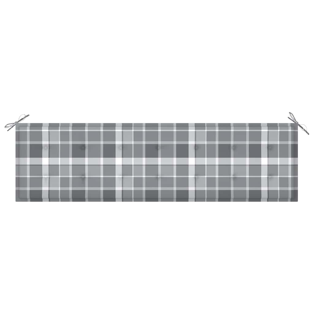 Bancă de grădină, pernă gri carouri, 175 cm, lemn masiv de tec