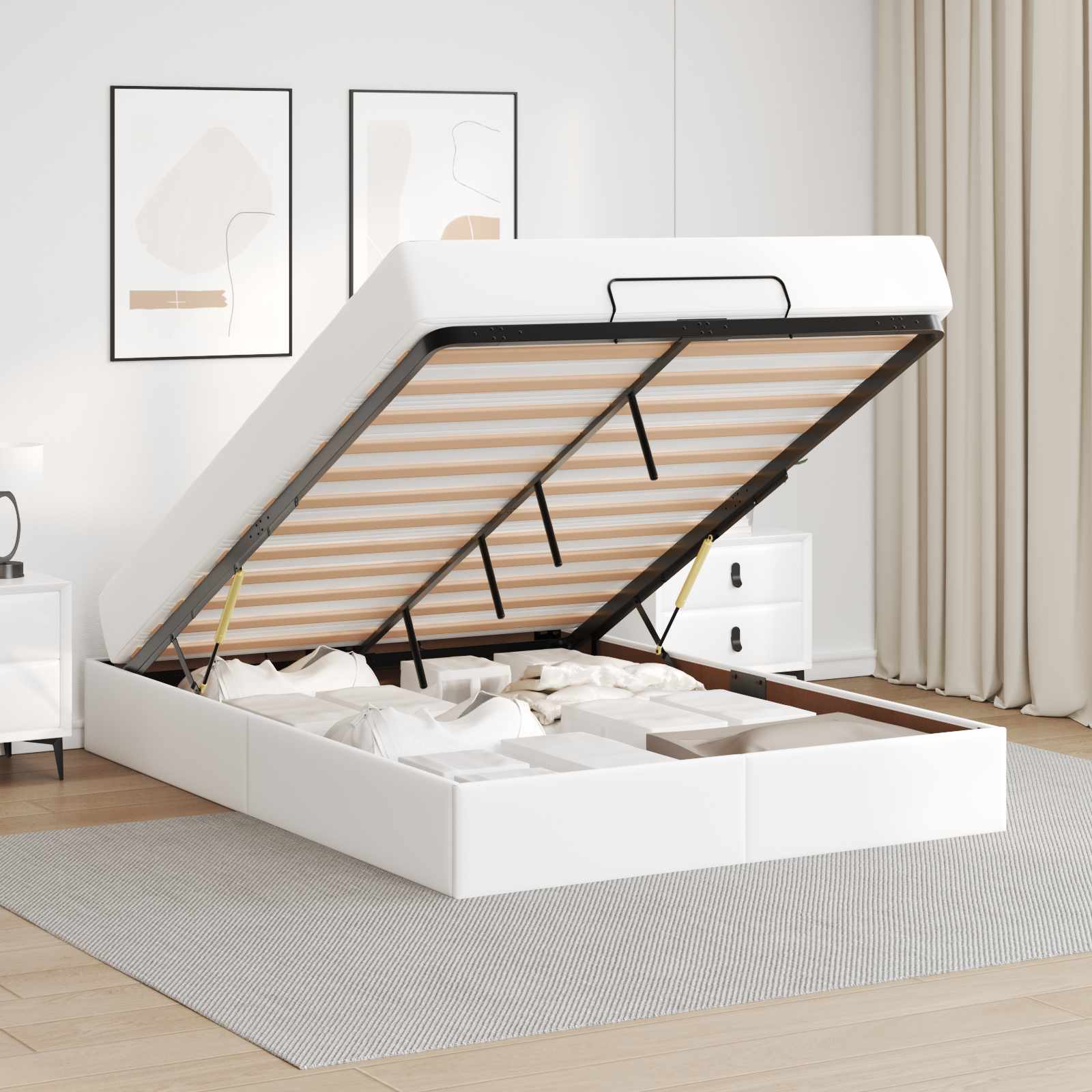 Acest cadru modern de pat cu saltea îmbină stilul cu utilitatea, aducând un plus la orice dormitor. Forma sa dreptunghiulară și finisajul mat aduc un aer elegant, având un design minimalist și linii curate. E făcut pentru case moderne și aduce o atmosferă relaxantă, devenind un loc perfect pentru relaxare. Cu textura sa netedă și structura solidă, îmbunătățește orice dormitor, oferind un mediu liniștit pentru cei care iubesc un refugiu stilat.