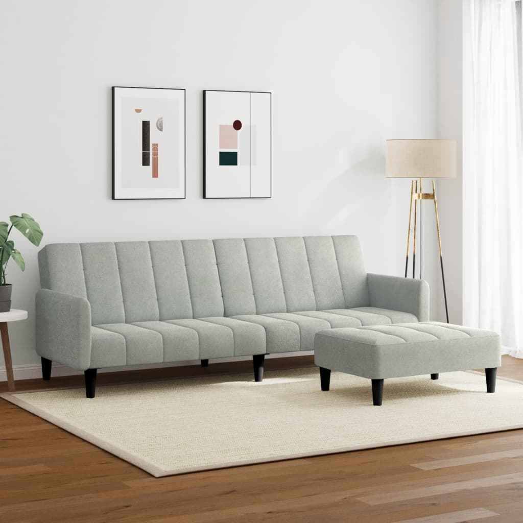 Această canapea extensibilă, cu taburet, este o soluție perfectă pentru a găzdui oaspeții peste noapte, oferind în același timp un spațiu confortabil de relaxare în timpul zilei.
