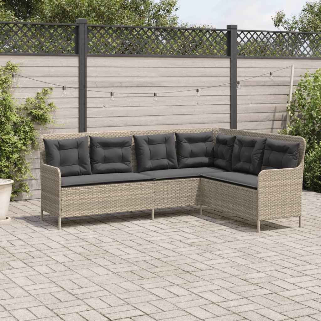 Această canapea de grădină în formă de L este completarea perfectă pentru grădina, terasa sau curtea dvs., oferind un spațiu confortabil și primitor pentru a discuta cu familia și prietenii sau pur și simplu pentru a vă relaxa și a vă bucura de aer liber.