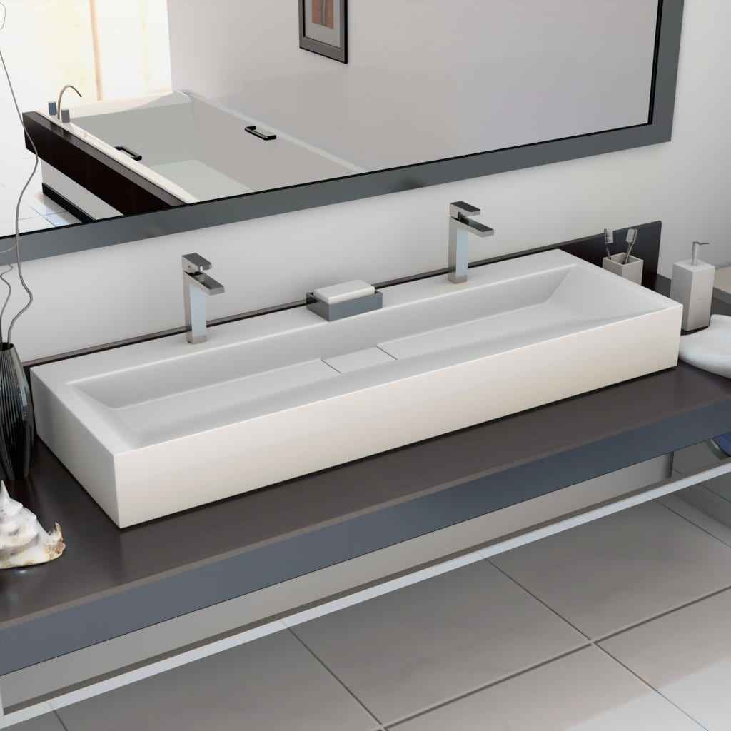 Chiuveta poate servi nu doar ca vas pentru utilizarea zilnică, ci și ca element decorativ în spațiul dvs. de locuit. Datorită designului novator și în tendințe, această chiuvetă se va potrivi cu orice decor. Chiuveta turnată din marmură este foarte ușor de curățat. Lavoarul are două orificii pentru instalarea a 2 robinete. În plus, acest lavoar poate fi folosit suspendat pe perete sau suprapus pe un dulap. Este ușor să atașați lavoarul pe perete cu materialele de montare incluse.