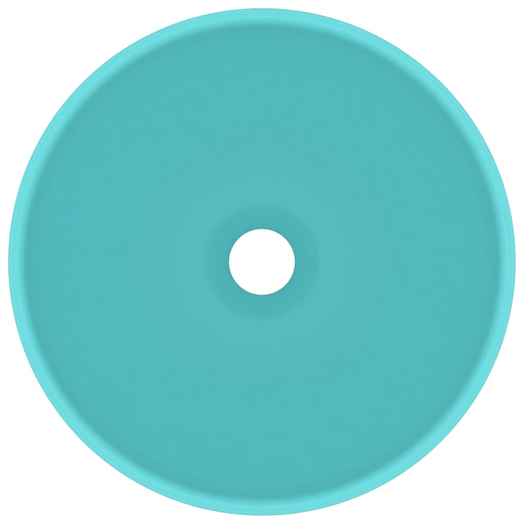 Lavoarul rotund este realizat din ceramică premium, fiind un element de decor ideal pentru orice baie, toaletă sau budoar. Suprafața sa mată și designul de lux aduc un aspect modern și elegant.