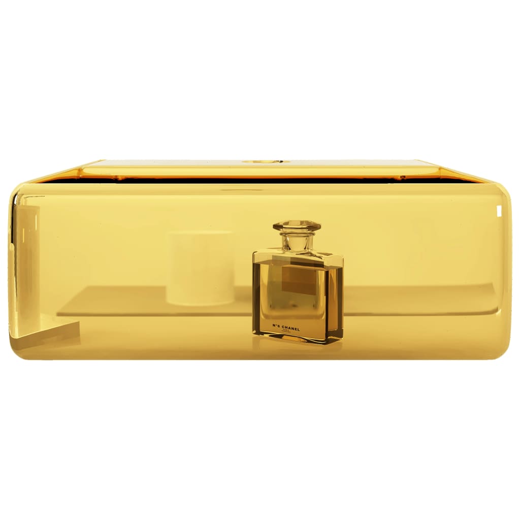 Chiuveta servește nu doar ca vas pentru uz zilnic, ci este și un element de decor în spațiul dvs. de locuit. Datorită design-ului său modern și contemporan, cu o culoare aurie strălucitoare, această chiuvetă de baie va fi cu siguranță potrivită pentru orice decor. Fabricată din ceramică, chiuveta este foarte ușor de curățat. În plus, finisajul foarte lucios adaugă o notă fermecătoare acestui lavoar de baie. Chiuveta are un orificiu pentru instalarea unui robinet.