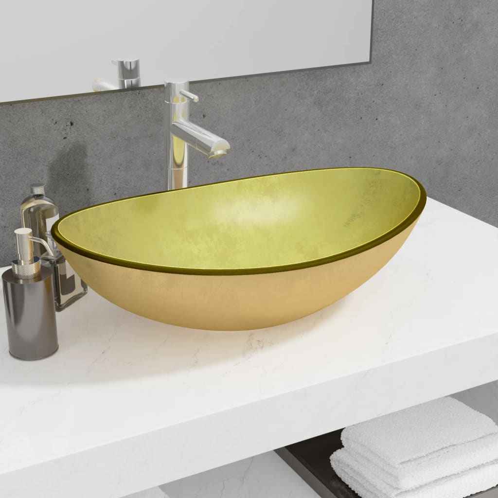- Material: Sticlă securizată cu finisaj auriu