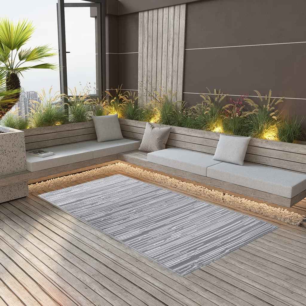 Acest covor de exterior modern va aduce un plus decorativ interesant în spațiul dvs. de locuit în aer liber! Așezați-l în zona dvs. de relaxare de pe balcon, pe terasă, pentru a vă simți ca acasă.