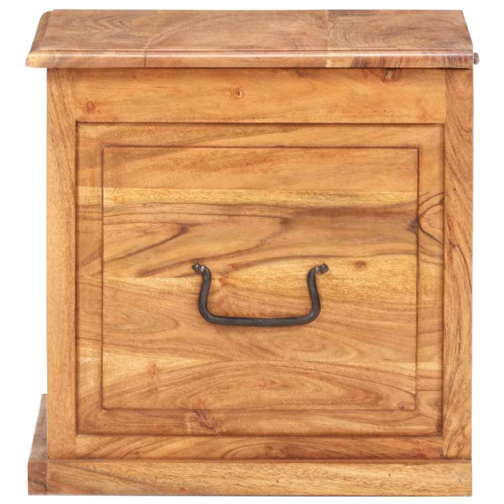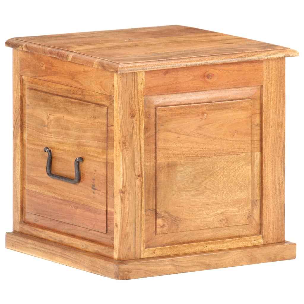 Cufărul este realizat din lemn masiv de acacia, făcându-l stabil și durabil. Dispune de două mânere în lateral pentru a putea fi ridicat. Această ladă de depozitare, cu un blat neted, poate fi folosită și ca noptieră. Măiestria execuției și granulația frumoasă a lemnului fac fiecare piesă de mobilier unică și ușor diferită de celelalte.