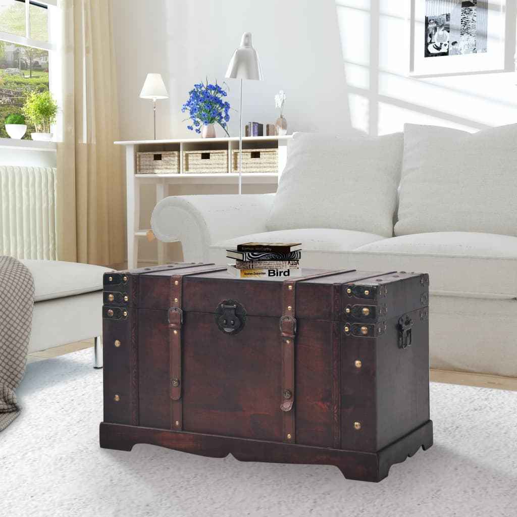 Acest cufăr de depozitare frumos, în stil antichizat, nu numai că va aduce un plus decorativ remarcabil în sufrageria sau dormitorul dvs, dar dispune și de spațiu amplu pentru a păstra o gamă largă de obiecte, precum haine, reviste și cărți, organizate și ascunse vederii.