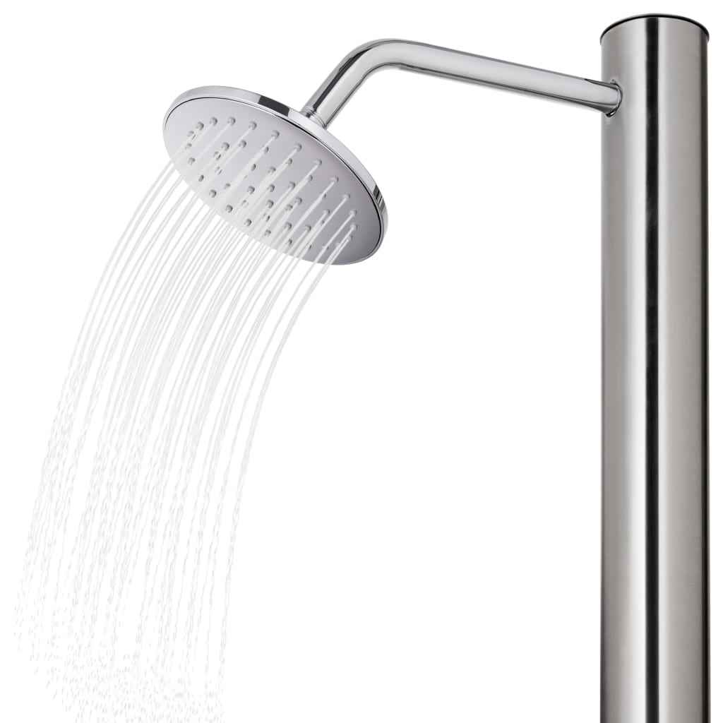 Acest duș de grădină este fabricat din oțel inoxidabil, ceea ce îl face rezistent la intemperii. Sistemul are un cap de duș și un robinet de spălat picioarele, pentru a satisface nevoile dvs. de grădinărit, udare și duș rapid.