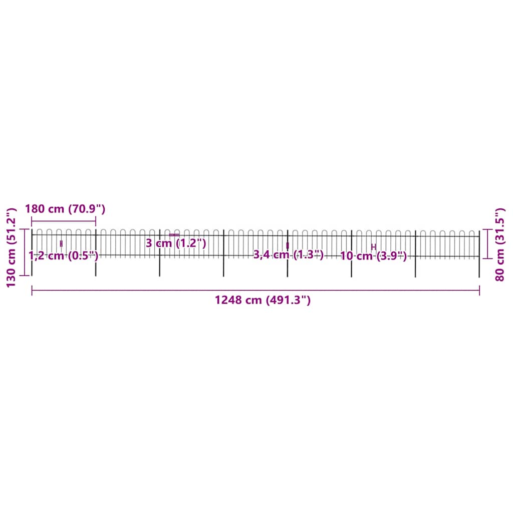Construiți un gard elegant în jurul grădinii, casei sau aleii dvs., cu acest gard de grădină! Acest gard de grădină decorativ din oțel, ce include 7 panouri de gard și 8 stâlpi, are o lungime totală de 11,9 metri. Acesta va forma o barieră perimetrală robustă și sigură, care nu necesită întreținere, pentru grădina, casa sau sediul firmei dvs.