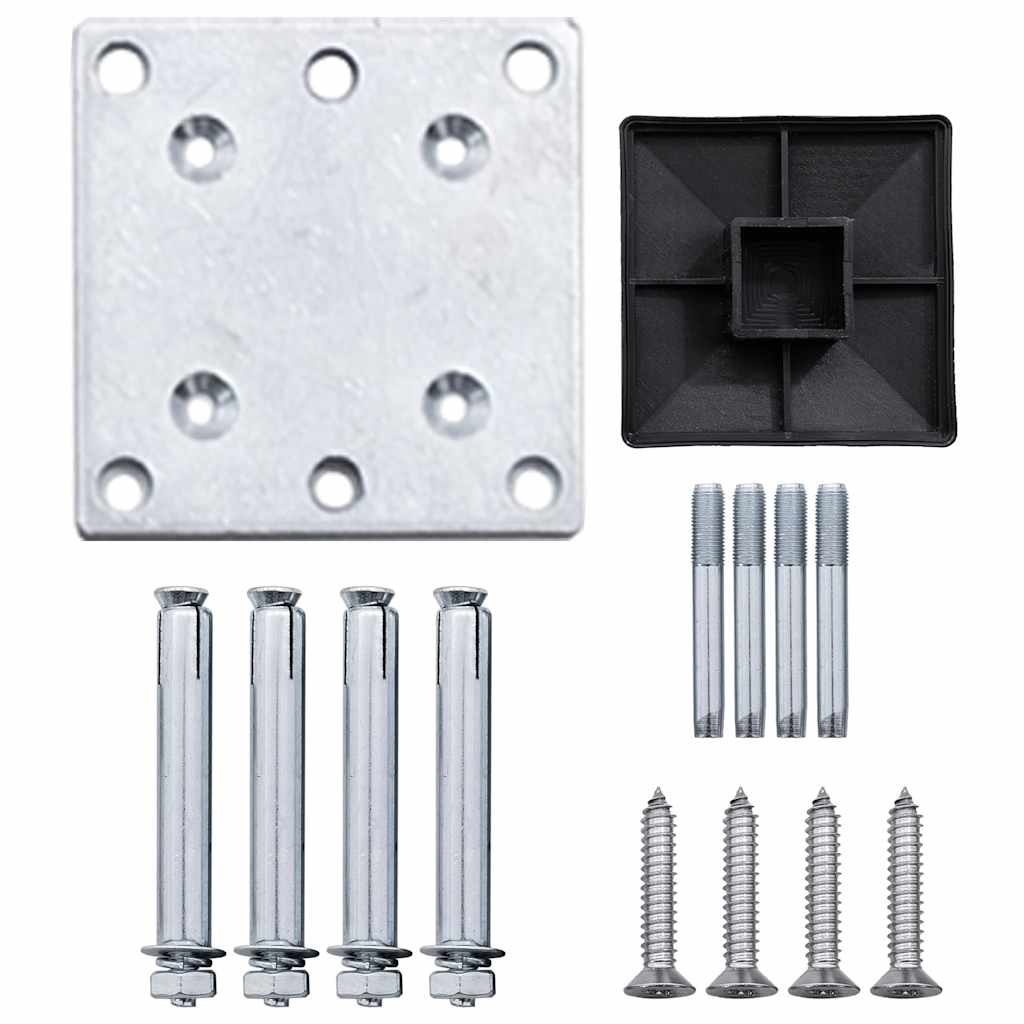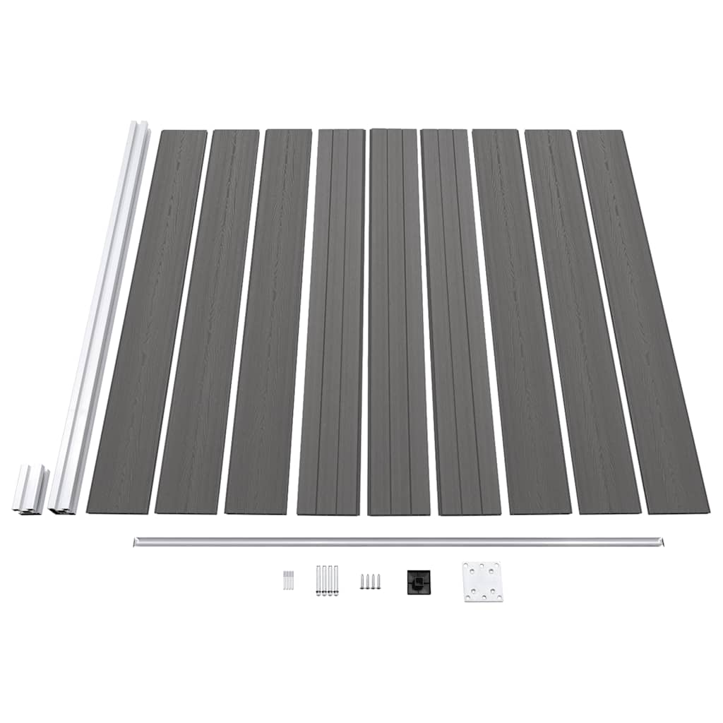 Pachetul de livrare include 9 panouri din WPC, 1 stâlp, 1 bază din oțel și 1 bară din aluminiu.