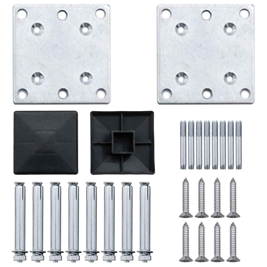 Pachetul de livrare include 9 plăci WPC, 2 stâlpi, 2 picioare din oțel și 1 bară de aluminiu.