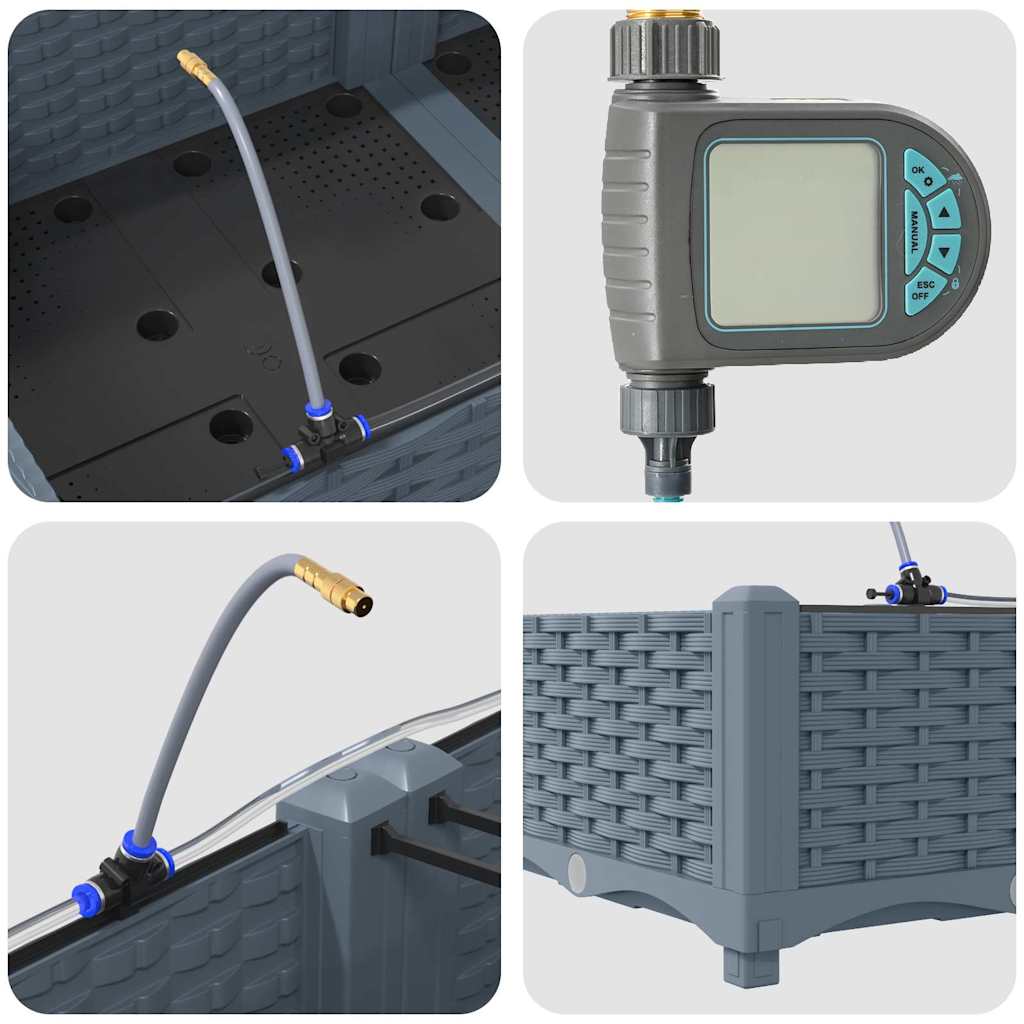 Ghiveciul de grădină cu irigare e ideal pentru cei care vor o adăugare utilă și frumoasă în aer liber. Cu un design modern, se potrivește perfect în orice grădină sau terasă. E simplu și funcțional, aducând un plus de eleganță în aranjamentele tale cu plante, fiind bun atât pentru amatori, cât și pentru cei cu experiență. Acest ghiveci combină stilul cu utilitatea, creând un mediu perfect pentru grădinărit.