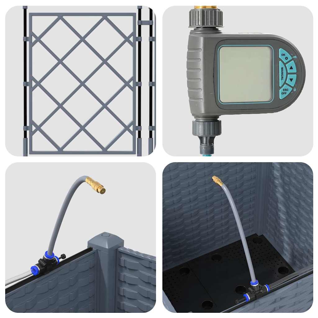 Ghiveciul de grădină cu irigare e ideal pentru cei care vor o adăugare utilă și frumoasă în aer liber. Cu un design modern, se potrivește perfect în orice grădină sau terasă. E simplu și funcțional, aducând un plus de eleganță în aranjamentele tale cu plante, fiind bun atât pentru amatori, cât și pentru cei cu experiență. Acest ghiveci combină stilul cu utilitatea, creând un mediu perfect pentru grădinărit.