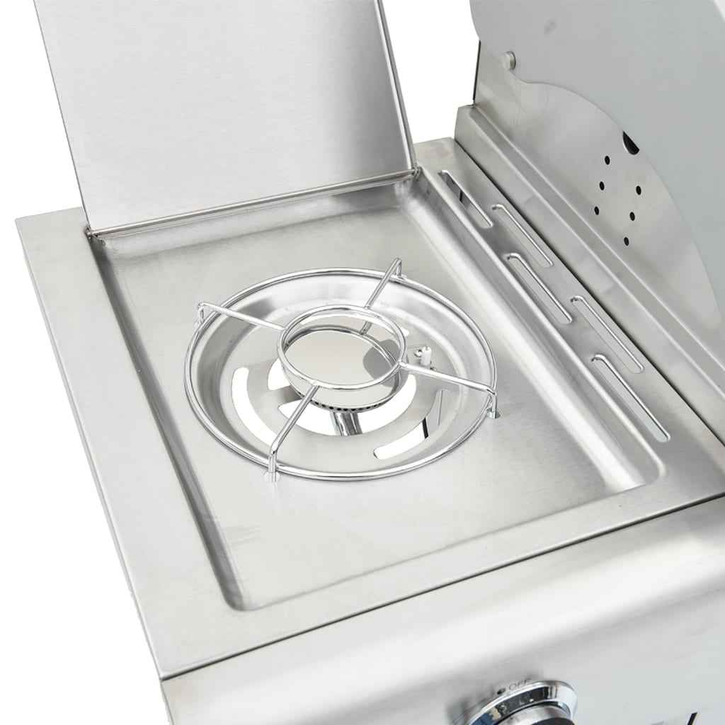 - Spațiu amplu de gătit: Grătarul de exterior are o suprafață mare de gătit, iar arzătorul lateral oferă spațiu de lucru suplimentar pentru prepararea sosurilor sau garniturile dvs. preferate.
