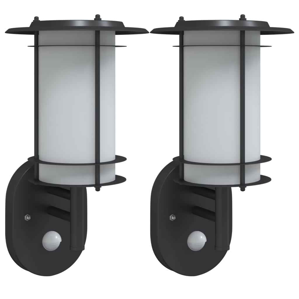 Lămpi exterioare de perete cu senzori, 2 buc., negru, oțel inox