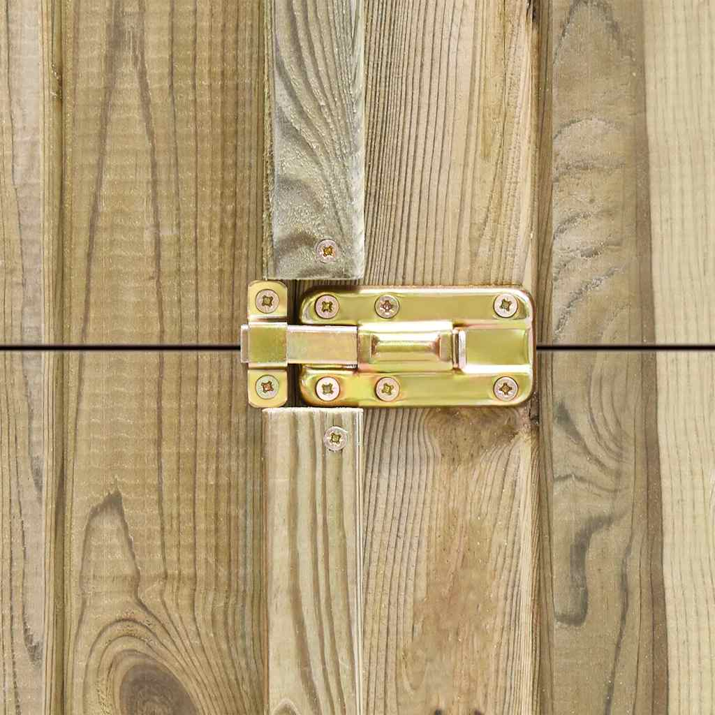Construit din lemn de pin tratat de calitate, acest șopron este durabil și rezistent la intemperii. Acoperișul său este acoperit cu pâslă bituminată, care protejează magazia de depozitare împotriva umezelii. Datorită designului cu două uși, această magazie pentru biciclete este ușor de accesat. În plus, zăvorul oferă o securitate suplimentară.