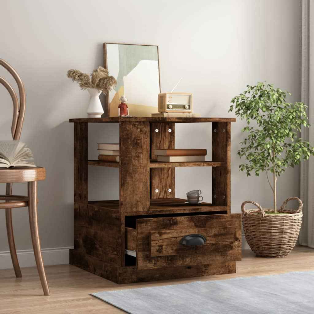 Masă laterală, stejar afumat, 50x50x60 cm, lemn prelucrat