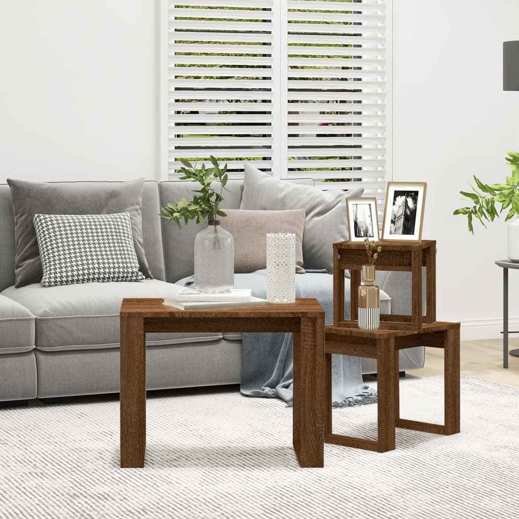 Mese suprapuse, 3 buc, stejar maro, lemn prelucrat