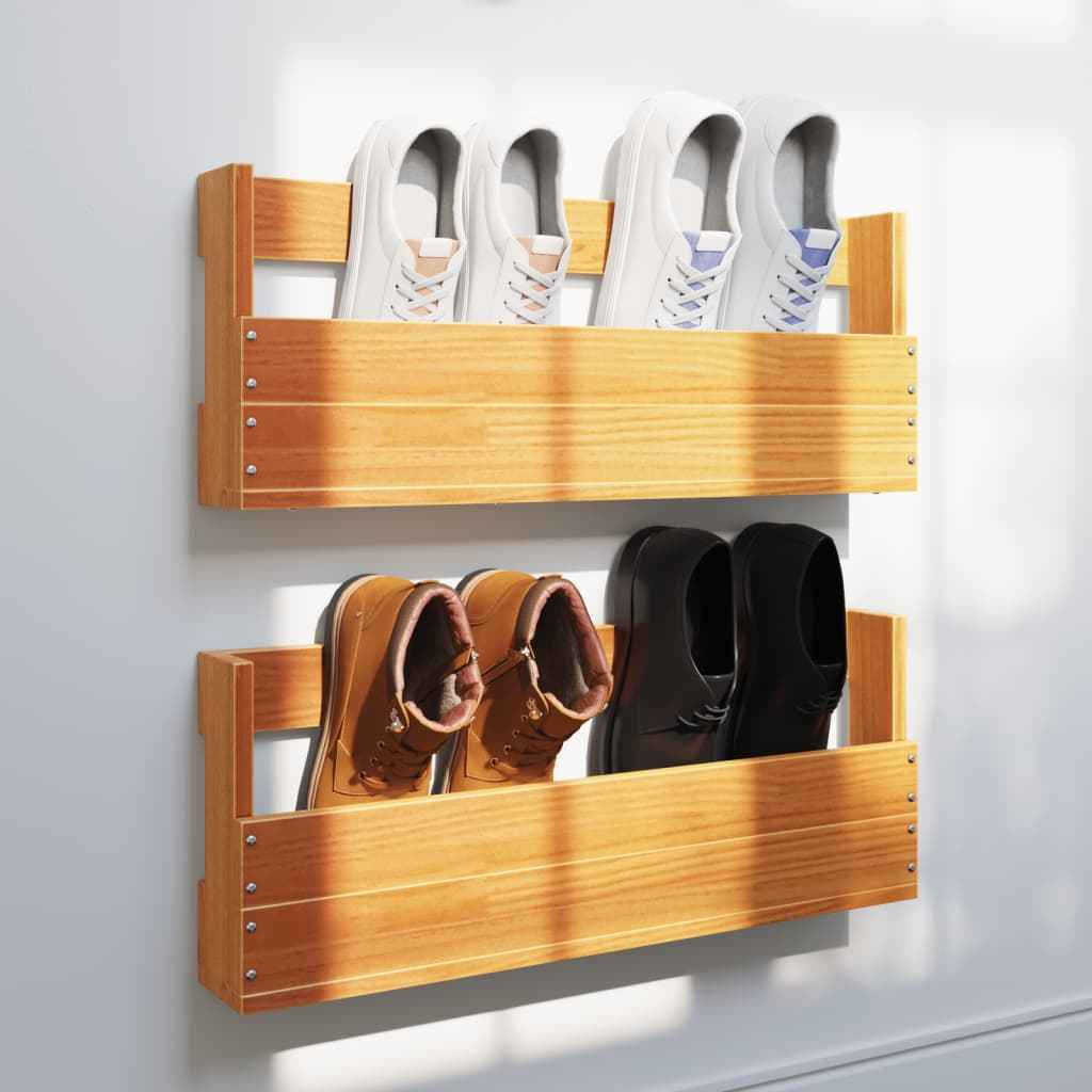 Păstrați-vă pantofii organizați și mereu la îndemână, cu aceste suporturi de pantofi din lemn, montate pe perete!
